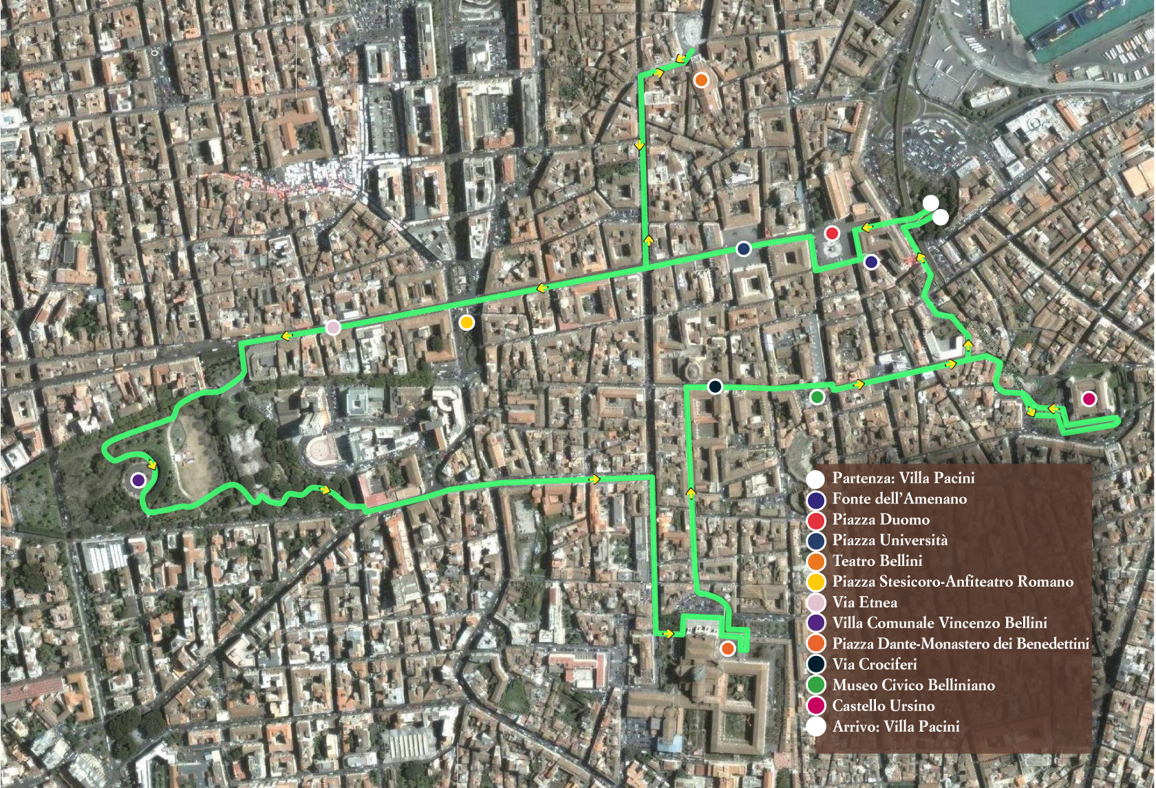 Dopo aver percorso ancora un tratto della Via Etnea, cuore pulsante della città con le sue attività commerciali ed i suoi luoghi di ritrovo, attraverseremo l’area verde del giardino comunale meglio noto come Villa Bellini. Da qui ci sposteremo nella parte alta della città per ammirare, in Piazza Dante, la chiesa di San Nicola e l’adiacente monastero dei Benedettini.