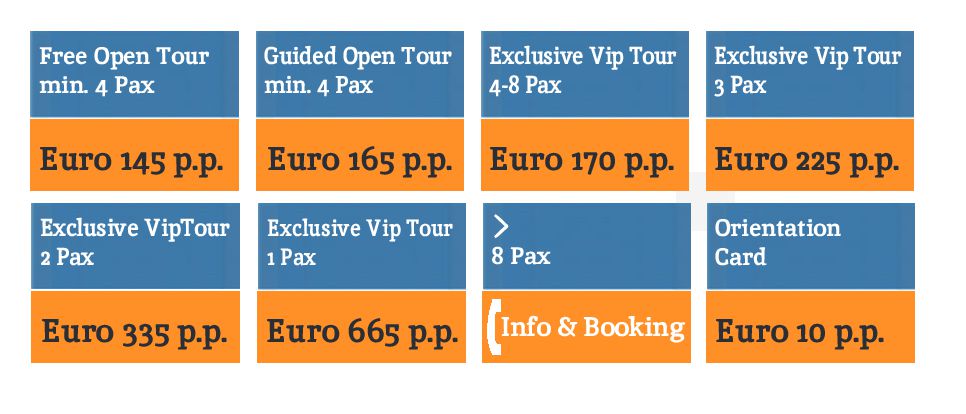 Per maggiori dettagli (prima di prenotare) guarda la Guida ai servizi - condizioni generali dei nostri tours. Sappi, comunque, che il sistema di prenotazione per i tours in questa località si attiva con il pulsante qui in basso. La prenotazione, comunque, non ti obbliga all'acquisto.