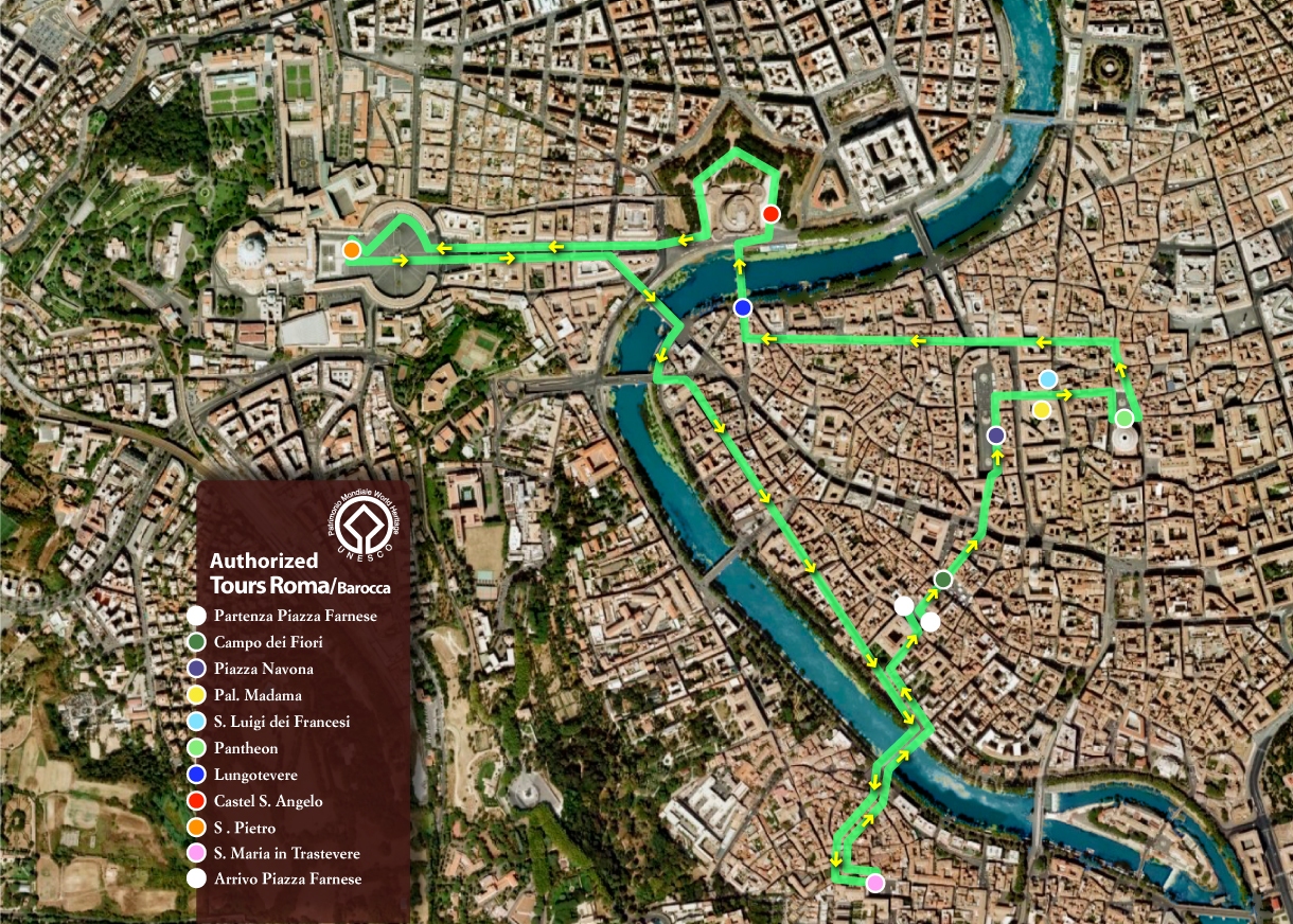 Si vedrà Piazza Farnese, con lo sfondo architettonico del maestoso fondale del Palazzo omonimo. Il Tour si dirigerà a Campo de’ Fiori, il più antico mercato ortofrutticolo di Roma, per antonomasia la “piazza dei romani”.