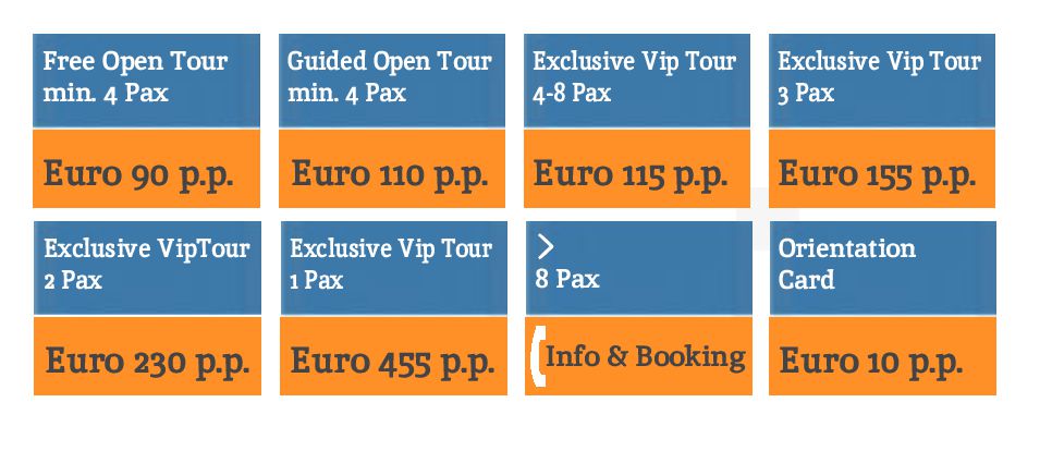 Per maggiori dettagli (prima di prenotare) guarda la Guida ai servizi - condizioni generali dei nostri tours. Sappi, comunque, che il sistema di prenotazione per i tours in questa località si attiva con il pulsante qui in basso. La prenotazione, comunque, non ti obbliga all'acquisto.