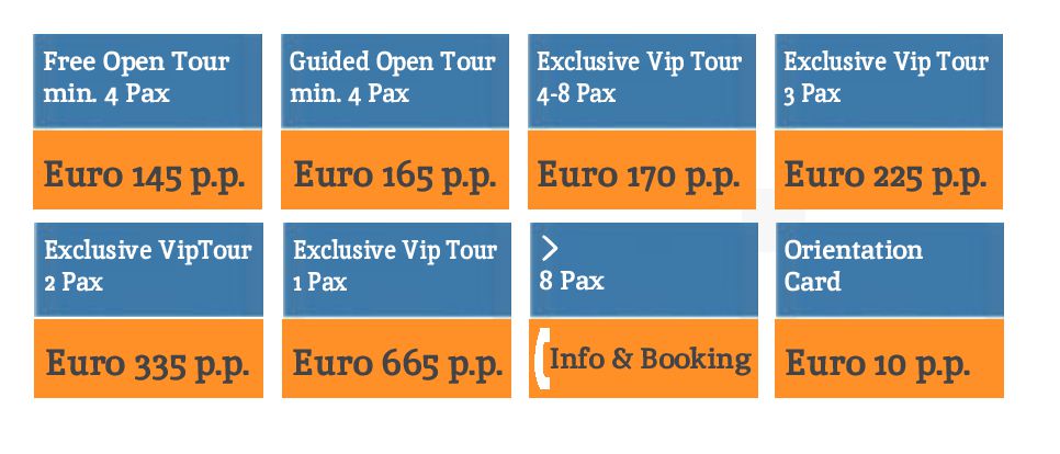 Per maggiori dettagli (prima di prenotare) guarda la Guida ai servizi - condizioni generali dei nostri tours. Sappi, comunque, che il sistema di prenotazione per i tours in questa località si attiva con il pulsante qui in basso. La prenotazione, comunque, non ti obbliga all'acquisto.